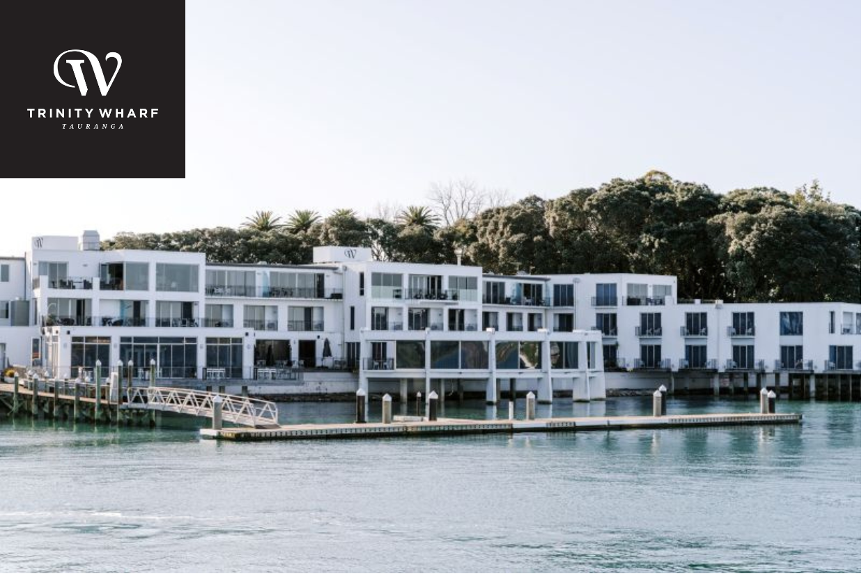 Trinity Wharf Tauranga is a stunning over-water hotel in the heart of Tauranga CBD, offering Urban, Pool, Harbour and Apartment room categories. All feature king beds, four-point bathrooms, heated floor tiles and complimentary Wi-Fi.